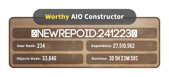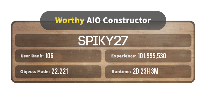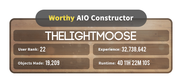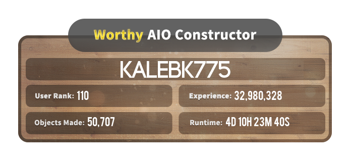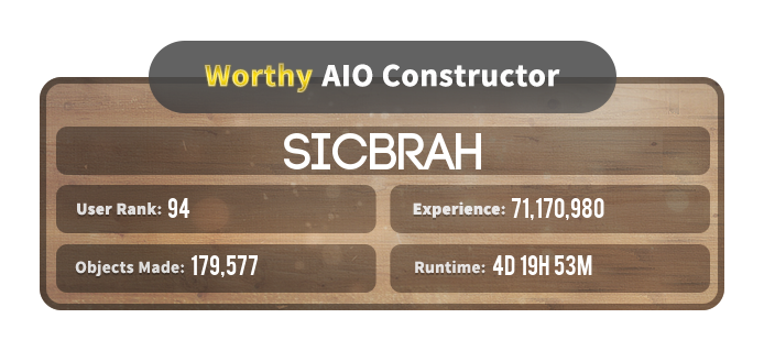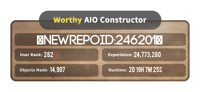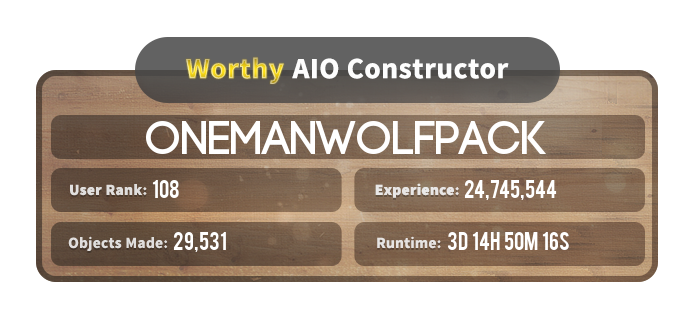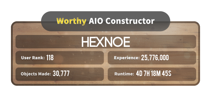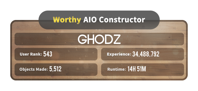 |w| Constructor | Rank | User | Time | EXP Gained ^ | Items Built |