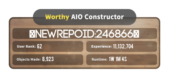 |w| Constructor | Rank | User | Time ^ | EXP Gained | Items Built |