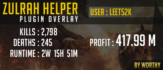 |w| Zulrah Helper | Rank | User | Time | Kills | Deaths | Profit ^ |